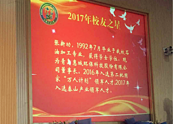 日前,我公司董事長張新功獲評中國石油大學(華東)“校友之星”榮譽稱號。10月2日,張新功董事長受邀出席“追求卓越、砥礪前行”主題校友返校日慶祝大會并接受“校友之星”榮譽表彰。大會共表彰了9位在本職崗位上勇于開拓、不斷創(chuàng)新、業(yè)績卓越、為國家發(fā)展建設(shè)做出重大貢獻的杰出校友。