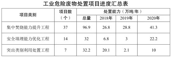 其中重點工程,圍繞提升危險廢物集中處置能力,重點實施集中焚燒能力提升工程、安全填埋能力優(yōu)化工程、突出類別利用處置工程等三大工程。組織各地建立健全重點工程項目庫,并采取滾動實施、動態(tài)調(diào)整方式,形成竣工一批、實施一批、儲備一批的項目推進機制。重點推動實施工程項目58個,預(yù)計投資98億元。其中,集中焚燒能力提升工程項目37個,共可新增能力96.9萬噸/年;安全填埋能力優(yōu)化工程項目14個,共可新增能力32萬噸/年;突出類別利用處置工程項目7個,共可新增能力32.2萬噸/年。