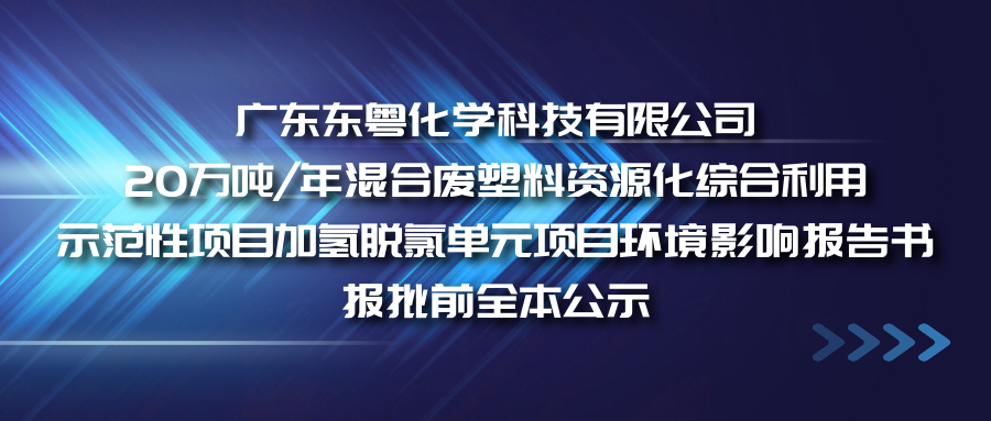 廣東東粵化學(xué)科技有限公司擬報(bào)批《廣東東粵化學(xué)科技有限公司20萬噸/年混合廢塑料資源化綜合利用示范性項(xiàng)目加氫脫氯單元項(xiàng)目環(huán)境影響報(bào)告書》。根據(jù)《中華人民共和國環(huán)境影響評(píng)價(jià)法》《環(huán)境影響評(píng)價(jià)公眾參與辦法》(生態(tài)環(huán)境部令 第4號(hào))的有關(guān)規(guī)定,為了方便公眾查閱,現(xiàn)予公開擬報(bào)批的環(huán)境影響報(bào)告書全文和公眾參與說明。[ 查看更多 ]